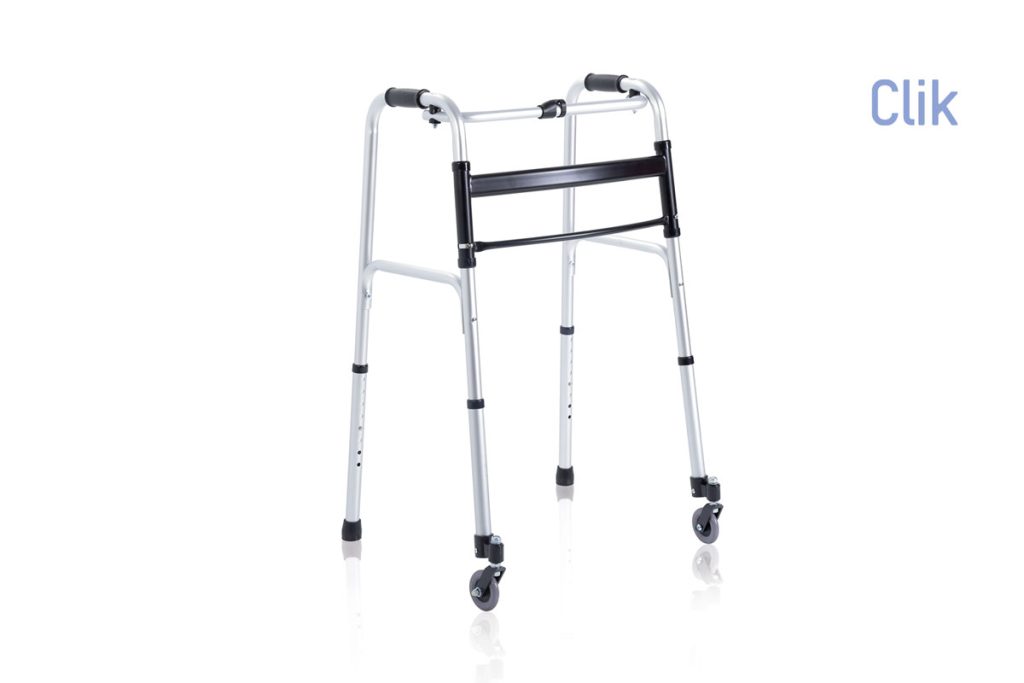 Noleggio Deambulatore pieghevole in alluminio a 2 puntali e 2 ruote – Moretti Click RP734