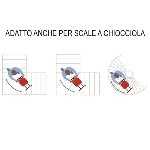 - Utilizzabile su scale dritte, curve e a chiocciola